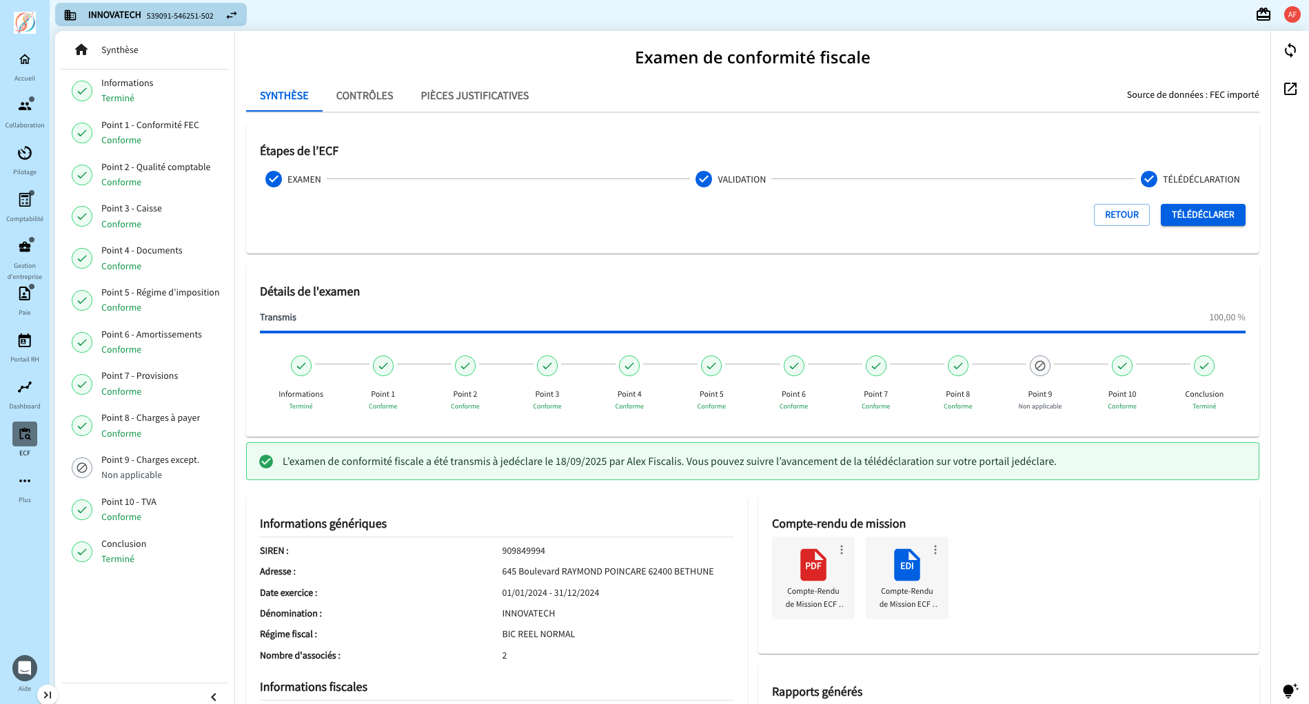 Un outil de production de la mission d’examen de conformité fiscale (ECF). Préparez, réalisez et télédéclarer le compte rendu de mission ECF pour industrialiser vos processus de production ECF.